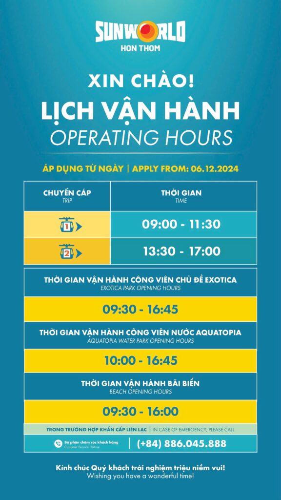 Hiện nay, vé cáp treo Sun World Hòn Thơm đã bao gồm quyền tham quan Công viên chủ đề Exotica, du khách không cần mua thêm vé vào cổng riêng (theo quy định vận hành hiện hành của Sun World).